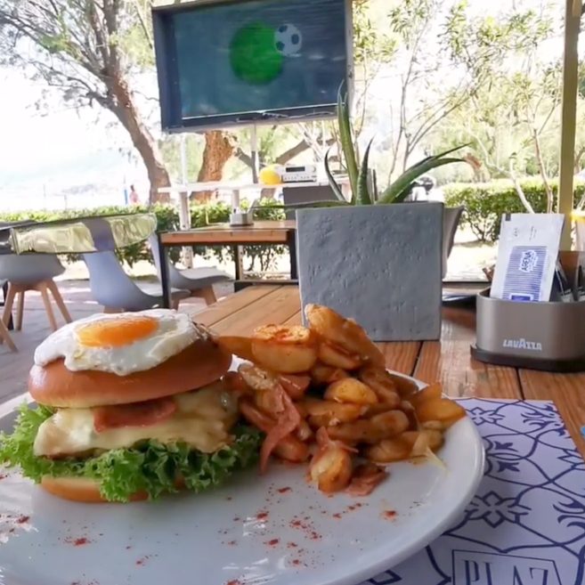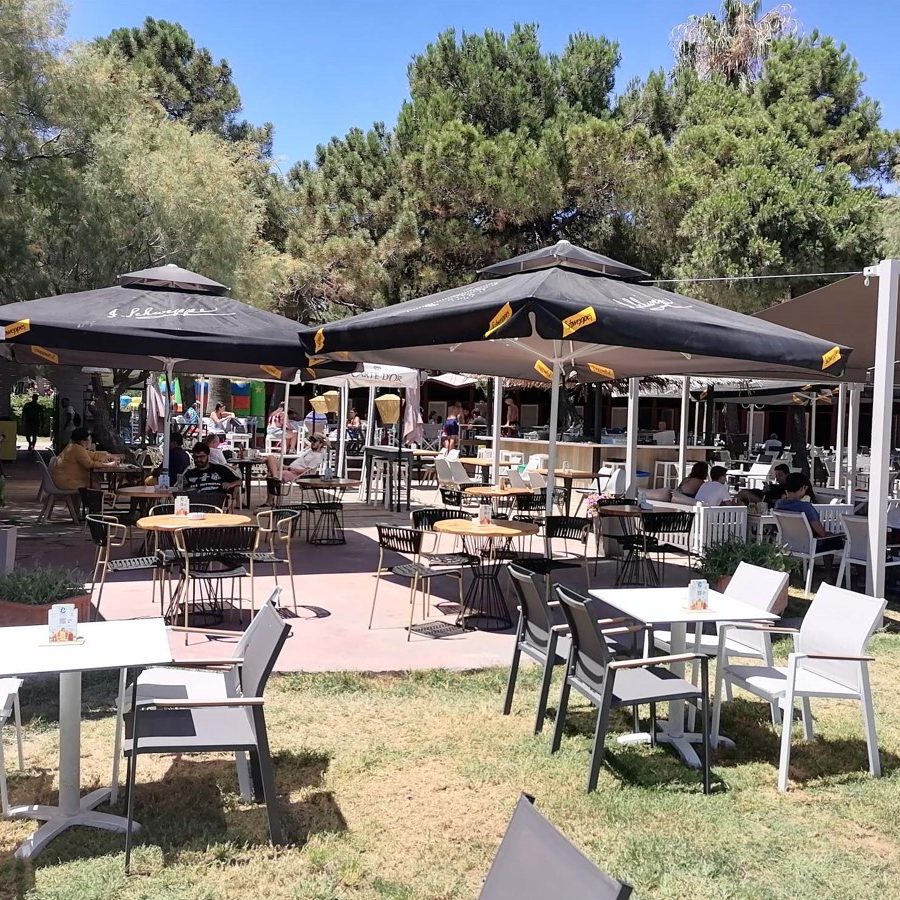 Şemsiyeler, şezlonglar (müşterilere ücretsiz), soyunma odaları, duşlar ve cankurtaran ile organize edilmiştir. Plajda, şezlongunuzda veya kafe alanında kahvenizin tadını çıkarabilir, hızlı atıştırmalıklardan birini deneyebilir veya yüzdükten sonra öğle yemeğinizi arkadaşlarınız veya ailenizle birlikte geleneksel yemeklerin yanı sıra dünya mutfaklarından tadabilirsiniz!