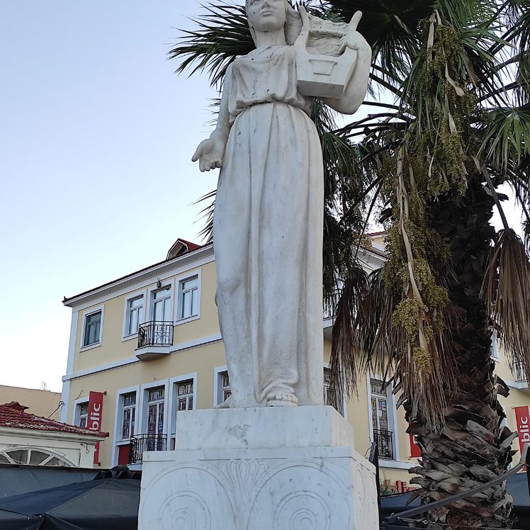 Στην πόλη δεσπόζει το άγαλμα της Σαπφούς και στην άκρη του λιμανιού το «Άγαλμα της Ελευθερίας», που βρίσκεται στην περιοχή Φυκιότρυπα και είναι κατασκευασμένο από μπρούτζο – όμοιο αυτού της Νέας Υόρκης – έχει μαρμάρινη βάση και αποτελεί το σήμα κατατεθέν της πόλης.
